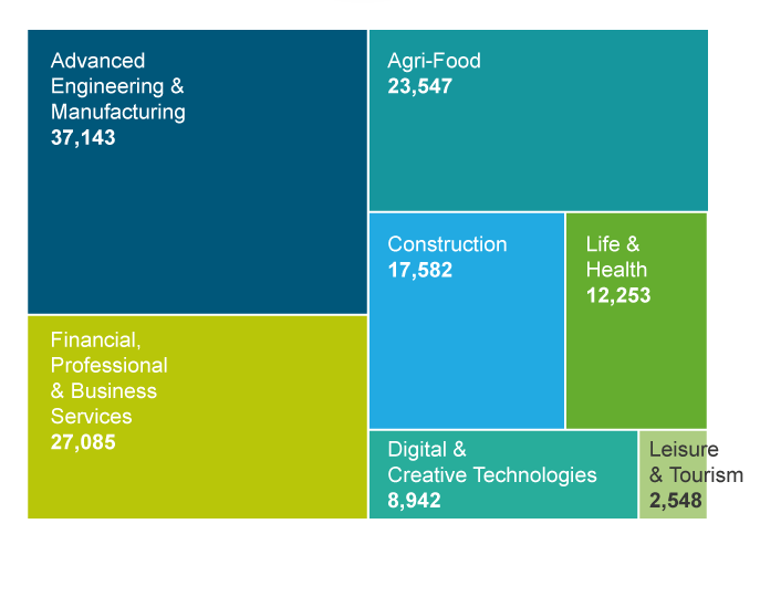 Invest NI supports businesses across a wide range of industry sectors, with more than 37,000 jobs in Advanced Engineering and Manufacturing and almost 30,000 jobs in Financial, Professional and Business services.