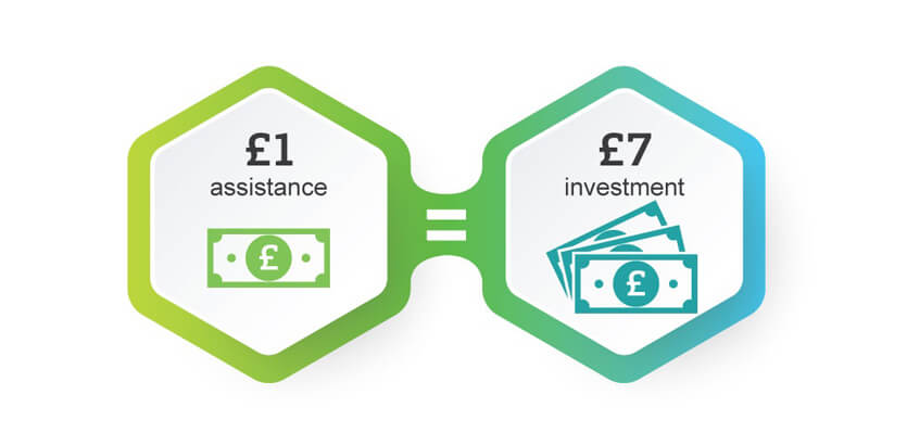 Every £1 of our assistance contributed towards £7 of investment in the local economy.