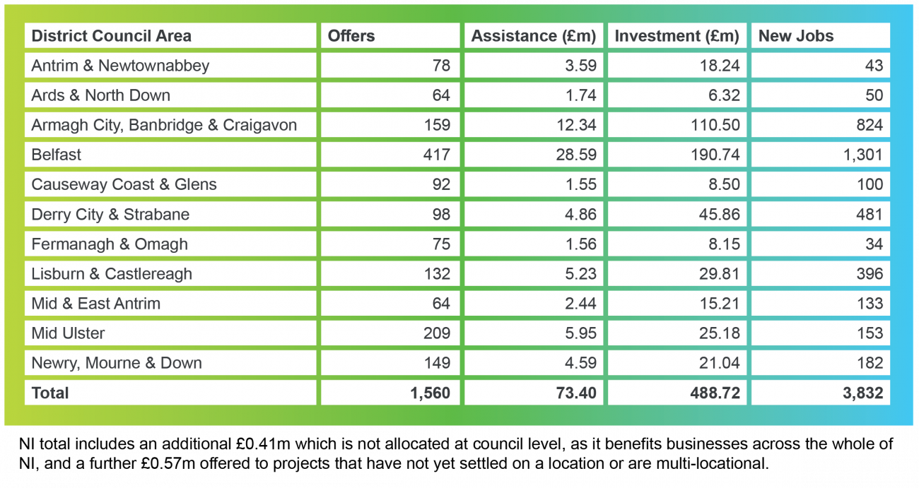 We worked with businesses in every council area right across Northern Ireland. We’ll publish a full breakdown of regional support by council area soon, but in the meantime, here are some high-level figures: