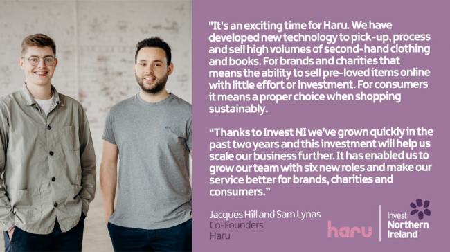 Along with SustainIQ we’ve helped multiple SMEs such as CADShare, Uleska and Haru to secure seed funding to bring their innovative ideas to life through our Access to Finance investment funds. We’ve been working with Haru since its inception, supporting the team to expand its service and create new technology to enable sustainable retailers and charities to sell online. As the second-hand fashion market continues to grow at pace, we helped Haru secure a £450,000 investment through the Coronavirus Equity Investment Fund and Co-Fund NI so that it can continue to grow and empower more organisations to sell online.