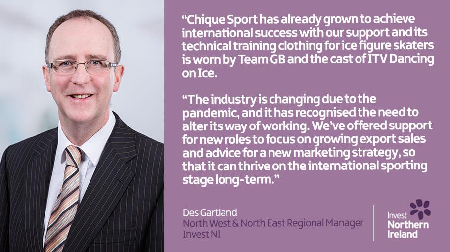 We’ve worked with Madlug, a social enterprise business in Richhill, to help grow its business since its inception in 2015. The company now ships its products across the globe and has recently secured a partnership with IKEA in UK and Ireland. Also established in 2015 by former British Olympic figure skater, Jenna McCorkell, Coleraine based Chique Sport has used our support to grow and adjust to the pandemic.