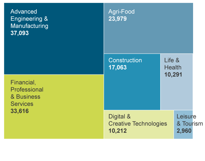 Invest NI supports businesses across a wide range of industry sectors, with more than 37,000 jobs in Advanced Engineering and Manufacturing and almost 30,000 jobs in Financial, Professional and Business services.