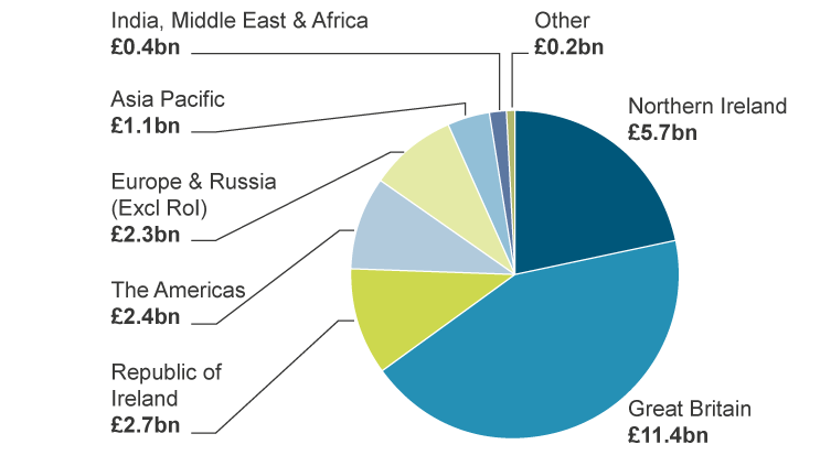 The largest export markets for Invest NI supported businesses are the Republic of Ireland (£3.0bn), the US (£2.4bn) and Germany (£0.6bn).