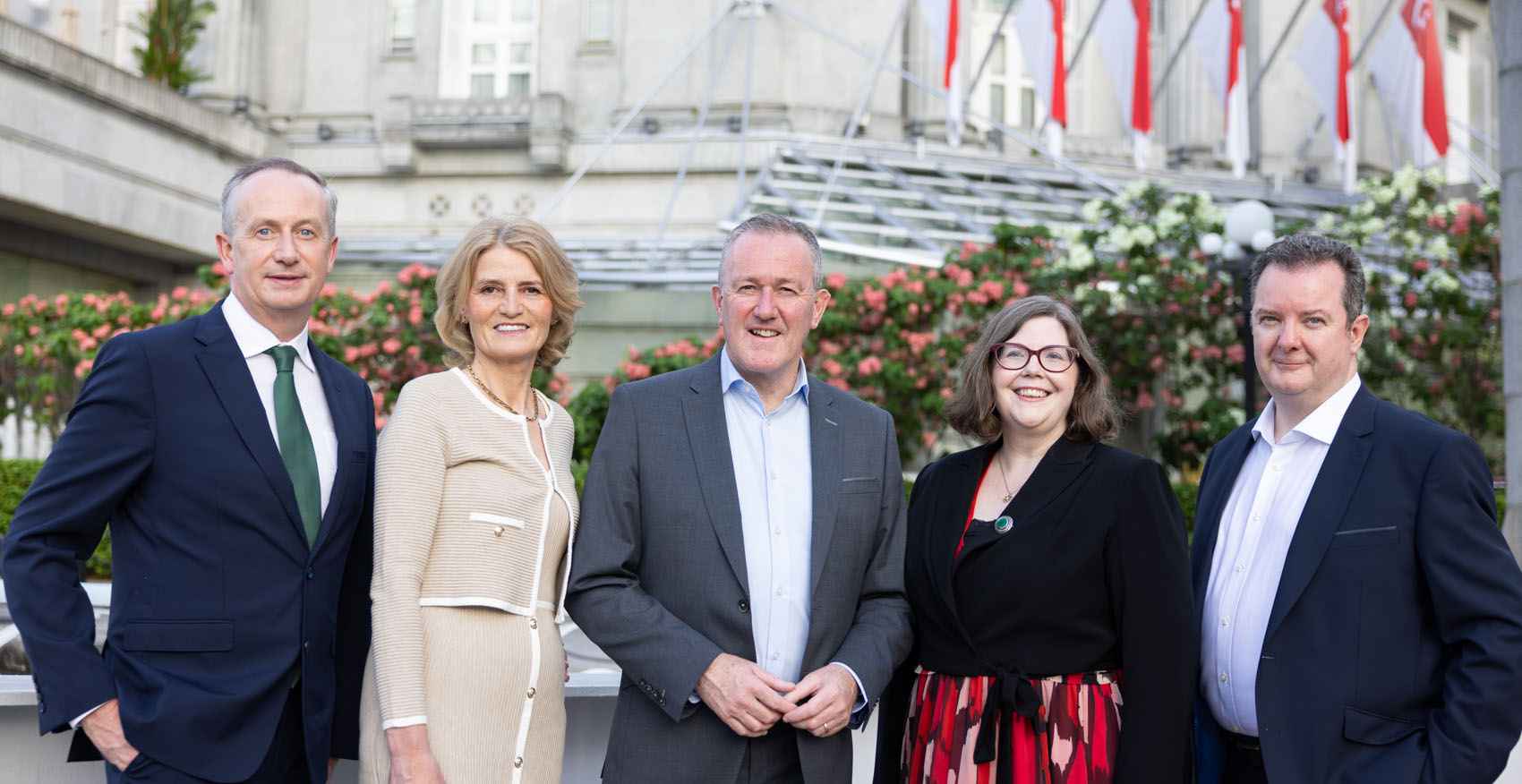 Pictured are (L-R) Leo Clancy, CEO, Enterprise Ireland; Mary Buckley, Executive Director, IDA Ireland; Economy Minister Conor Murphy; Sarah McGrath, Irish Ambassador to Singapore; and Kieran Donoghue, CEO, Invest Northern Ireland.