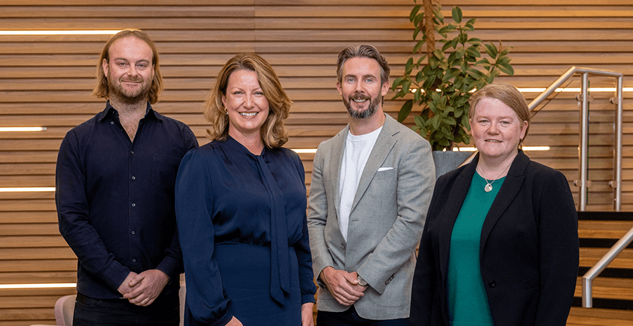 Pictured (L-R) are Dr. Gregory Fletcher, Chief Technology Officer, Ocula Technologies; Anne Beggs, Director of Trade and Investment, Invest Northern Ireland; Thomas McKenna, CEO, Ocula Technologies; Fustina Donaghy, VP Engineering, Ocula Technologies.